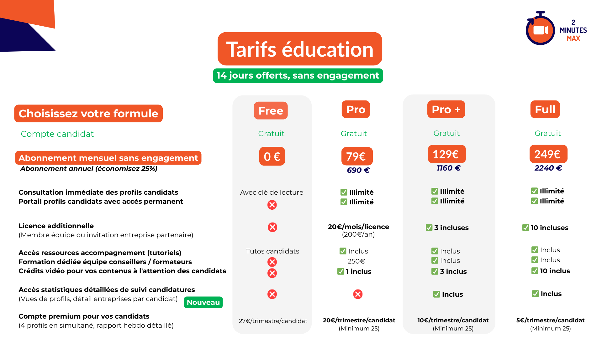 🏫 La licence professionnelle 2 Minutes Max est proposée à prix préférentiel aux acteurs de l’éducation, pour accompagner leurs étudiants dans leur posture, leur recherche de stage ou d’alternance, ou pour intégrer 2’MAX dans le processus d’admission.