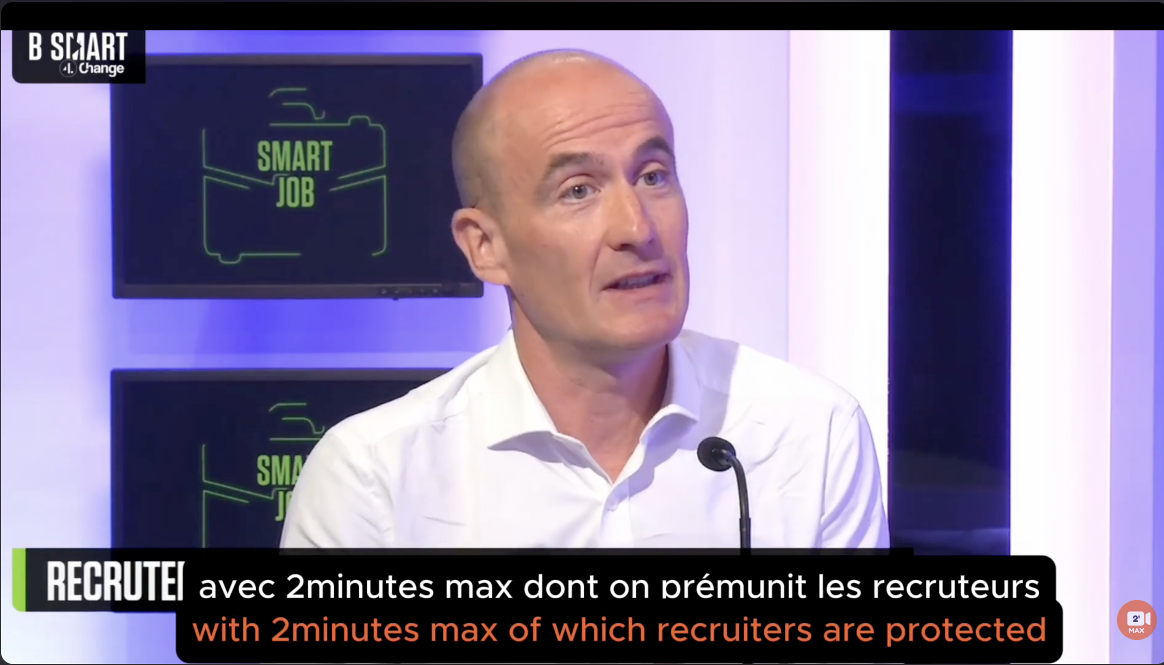 C’est très différent. Un 2’MAX est enregistré directement sur la plateforme et garantit un format identique pour tous, compressé, sans montage, limité à 2 minutes. Un 2’MAX n’est pas public : il est visible uniquement par les recruteurs abonnés à la plateforme et ne peut pas être téléchargé. La réussite d’un 2’MAX ne dépend pas du talent du communicant, mais de l’adéquation entre le discours du candidat et les attentes du recruteur, pour tous les métiers — créatifs ou non. Et il ne reprend pas toutes les étapes du parcours : le CV, c’est le passé ; le 2’MAX, c’est le présent et l’avenir.